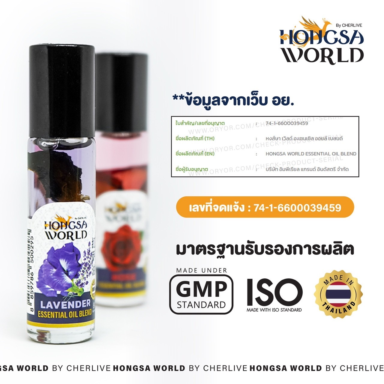 ผลิตภัณฑ์น้ำมันหอมระเหยผสมสมุนไพร แบรนด์ Hongsa world หอมสดชื่นเย็นสบาย ใช้งานง่าย พกพาสะดวก ปริมาณ 8 ml. ผ่านการรับรองมาตรฐานGMP และ ISO